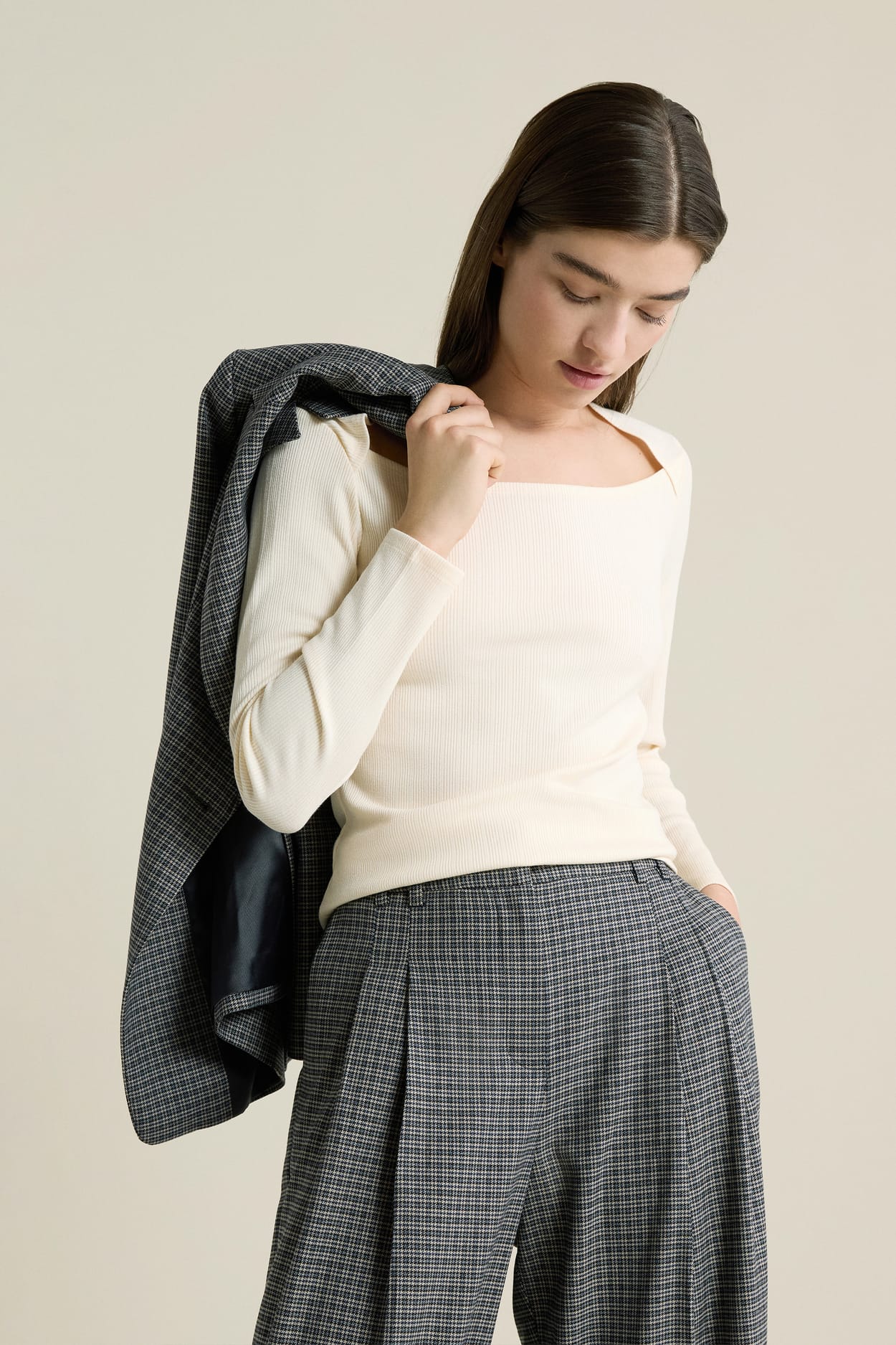 T-shirt manches longues encolure carrée;${refinementColor}