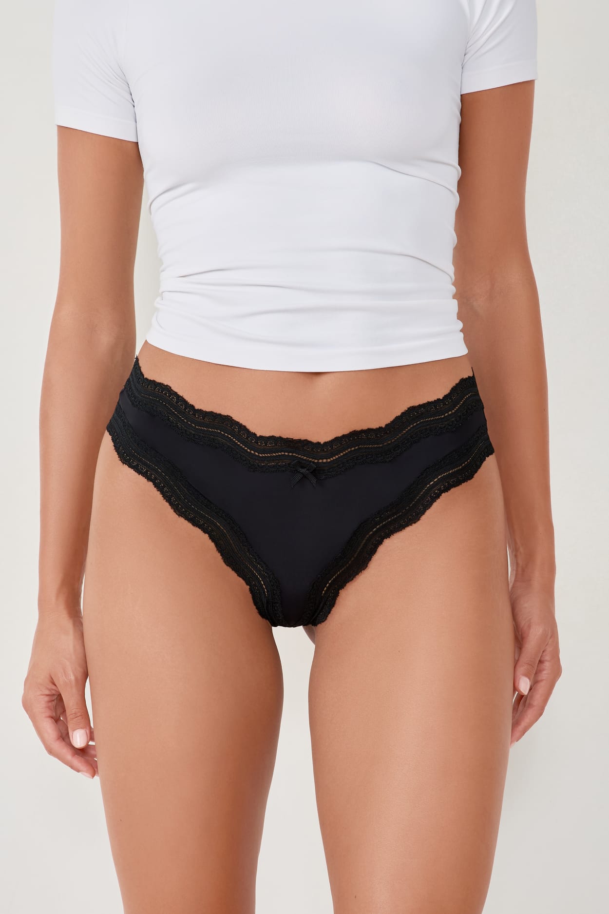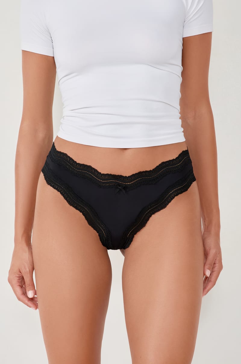 Les bandes de dentelle suivent les contours de nos formes avec délicatesse. On craque pour ces dessous doux!