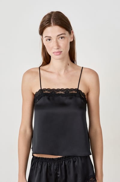 • Caraco à fines bretelles décolleté dentelle;${refinementColor}