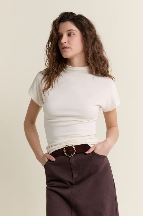 • T-shirt à manches courtes à col montant;${refinementColor}