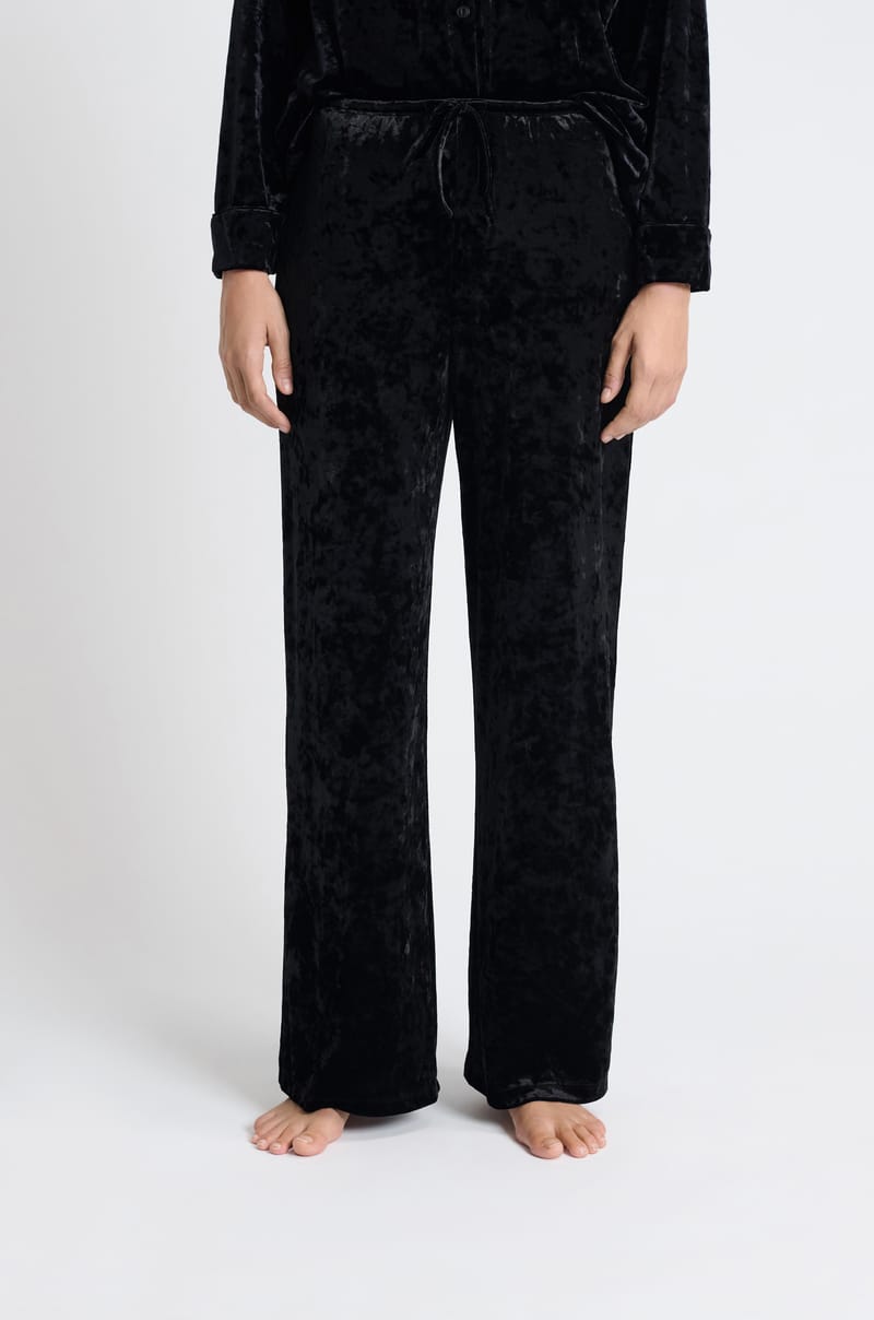 Le pantalon de pyjama s'habille de velours. Muni d'un coupe fluide, il s'associe avec la chemise assortie...
