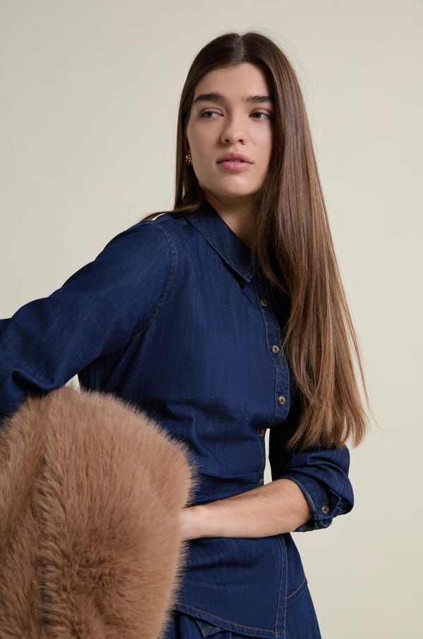 Blouse nouée sur le devant effet denim;${refinementColor}