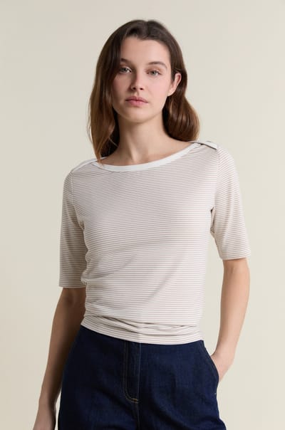 T-shirt manches courtes avec coton modal;${refinementColor}
