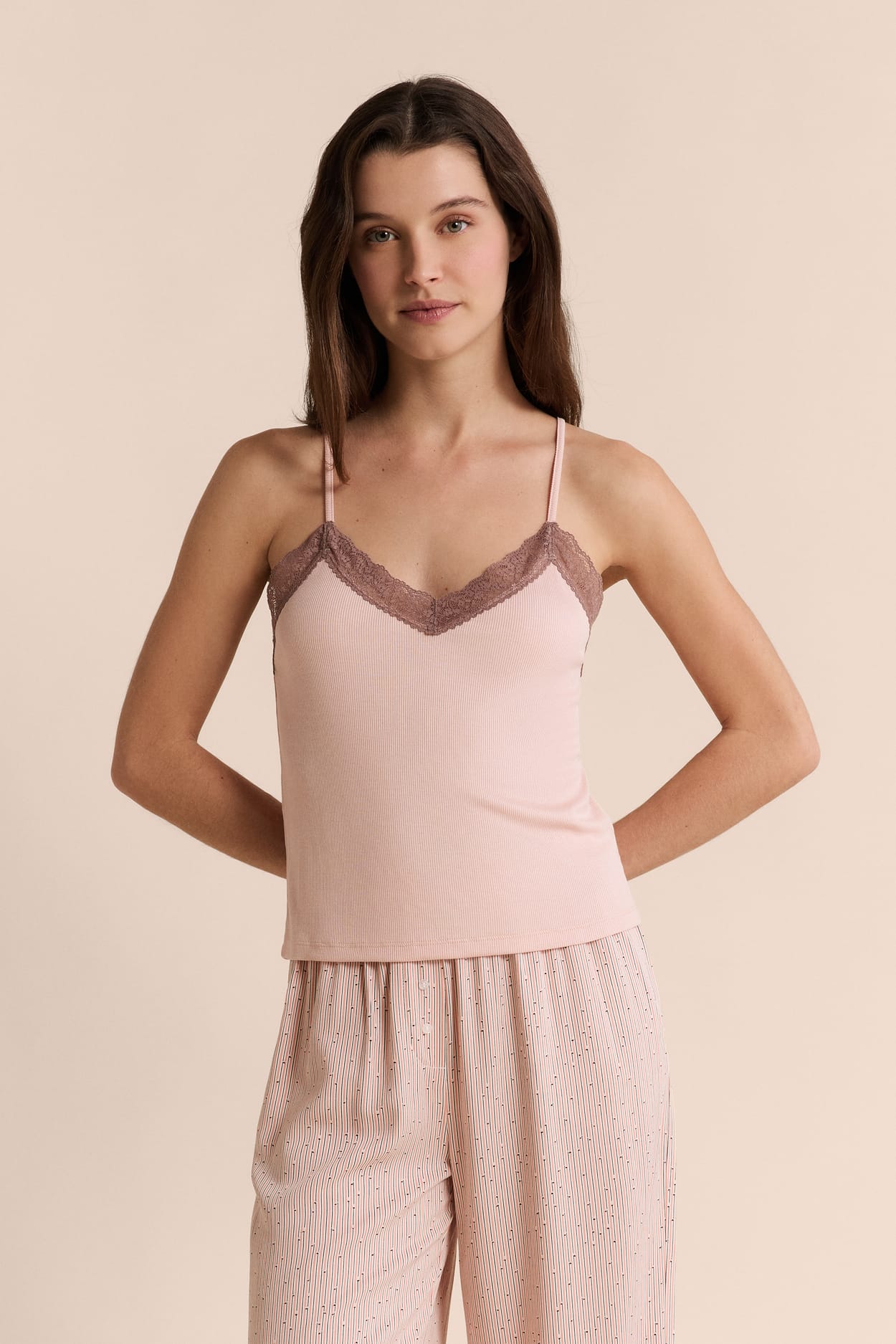Débardeur bicolore avec détails dentelle réalisé en fibre SEACELL®