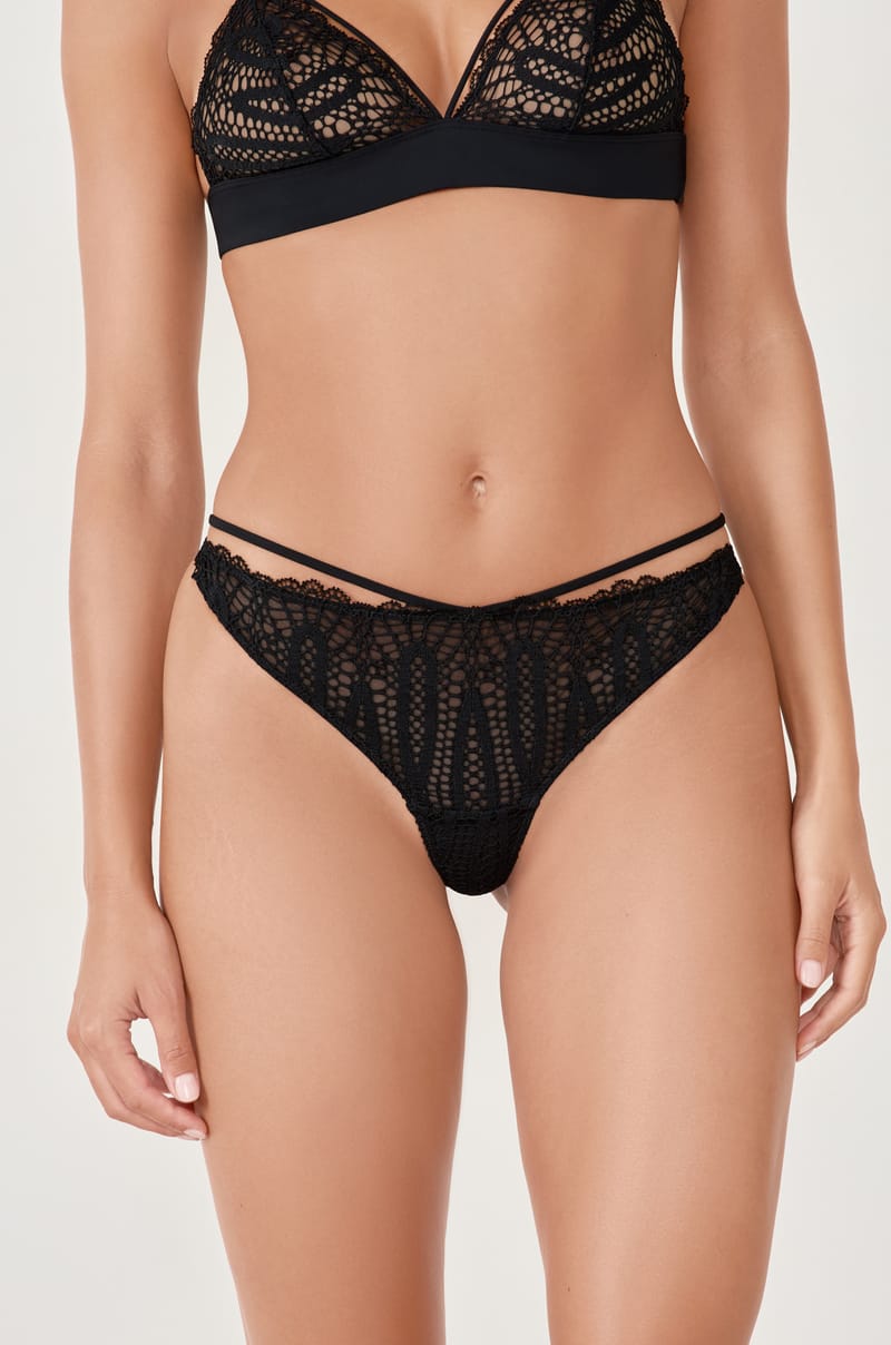 Ce string en dentelle est idéal pour une allure ultra féminine. Muni de bords festonnés et d'un anneau à l'arr...