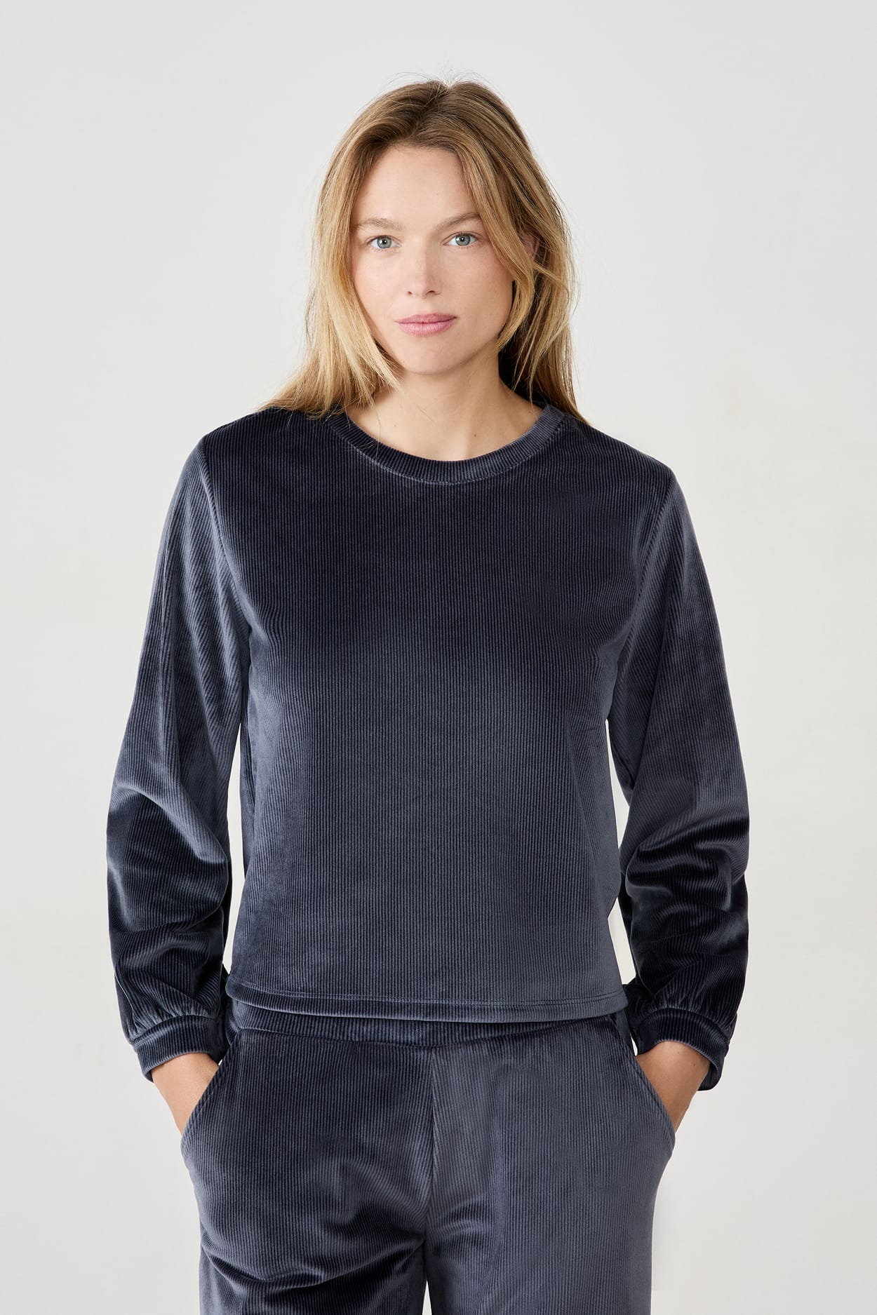Ce sweat à manches longues est revisité avec un effet velours. Sa coupe large est idéale et apporte une note cosy....