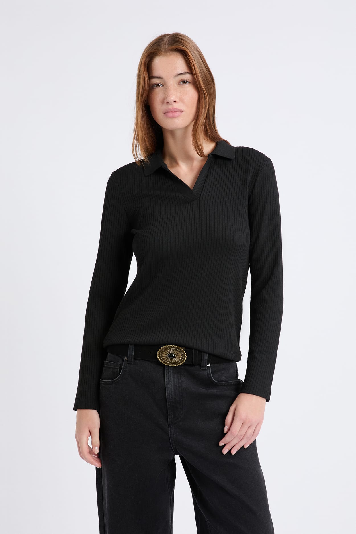 Basique du vestiaire, ce t-shirt manches longues opte pour un col polo avec un décolleté en V....